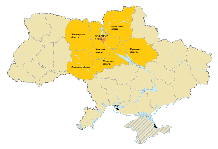Зона виробництва асфальтобетонних сумішей нашої компанії складає 25% території України та включає в себе: